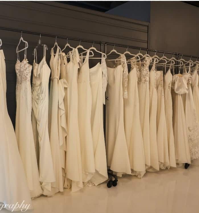 We prioritize our brides and have no more than two bridal appointments at the same time. We value your time and ours. Each appointment has a reservation fee. We gift our brides $300 off their dress when they say “yes to the dress” on their first visit.